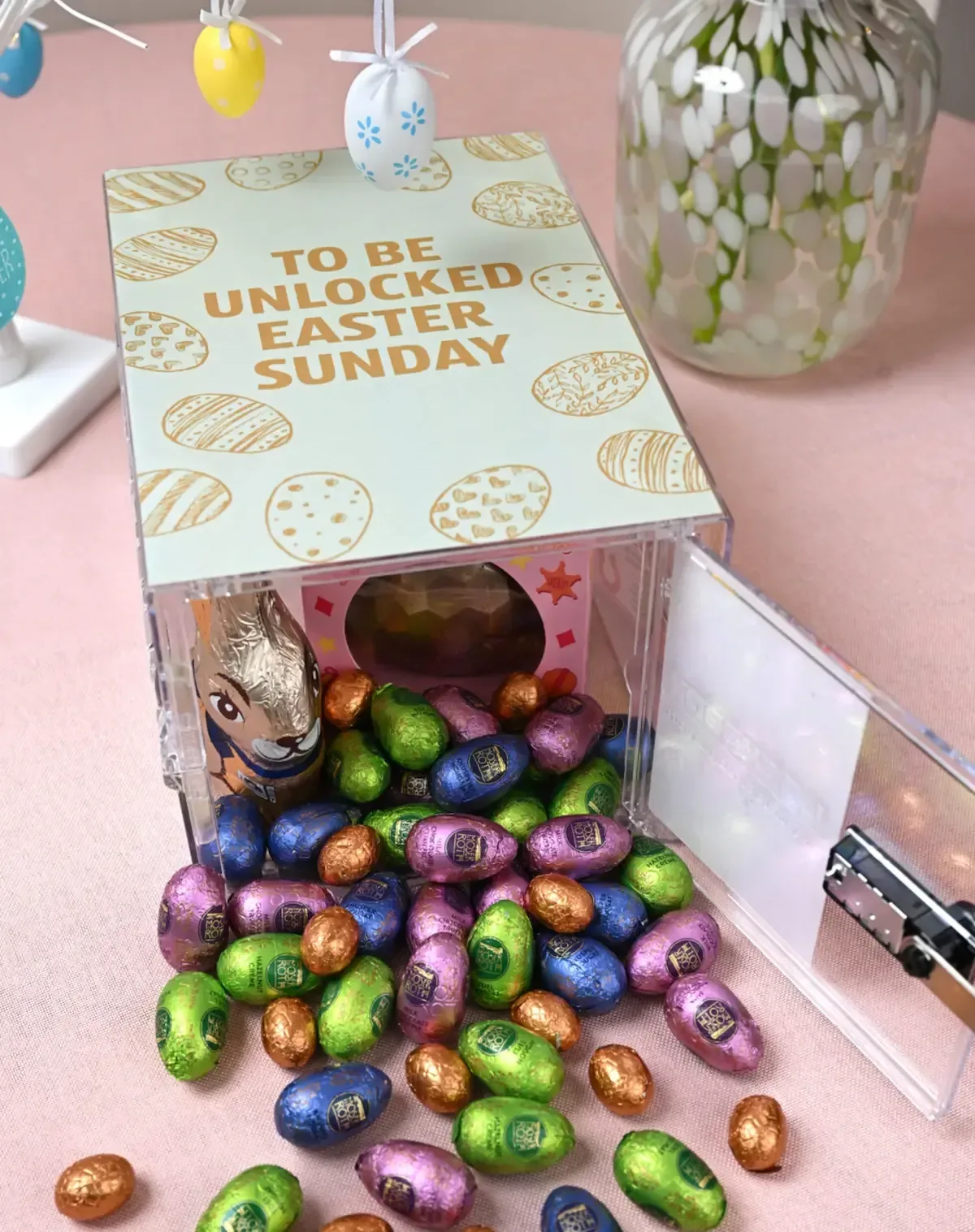 Easter is a time for family, fun, and chocolate, but our research shows that many parents can’t resist eating their children’s treats and have to buy replacements. Our Easter Egg Lock Box provides a fun, light-hearted solution to protecting Easter egg stashes.