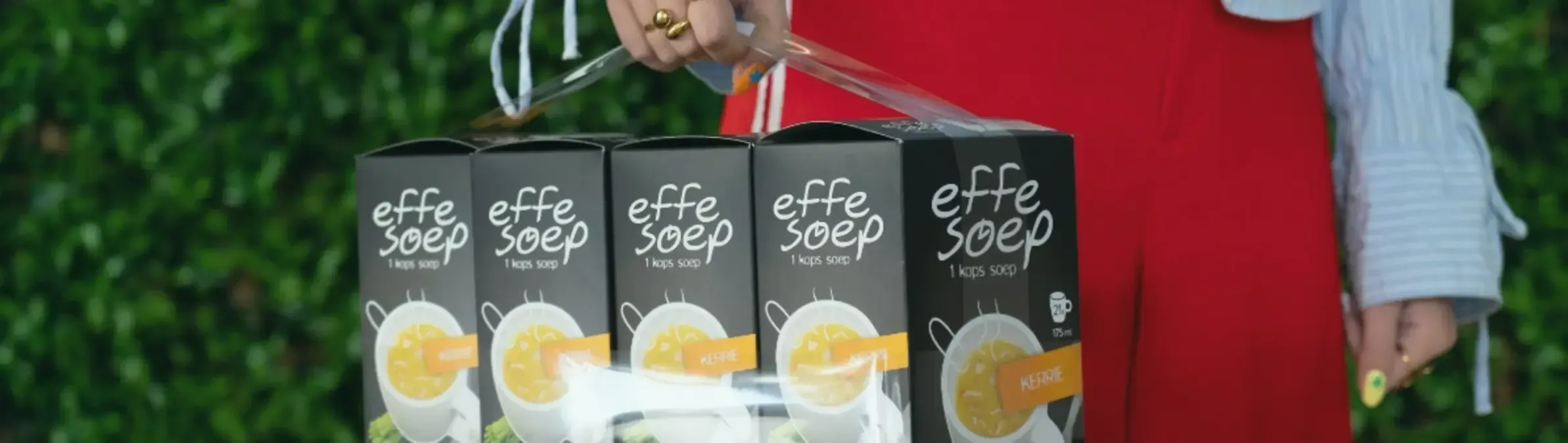 What started as a transport fix has evolved into a distinctive form of packaging, practical, cost-efficient, and delightfully unexpected. It has become a clever visual signature for EFFE Soep, helping them stand out in a crowded market while staying true to their brand.