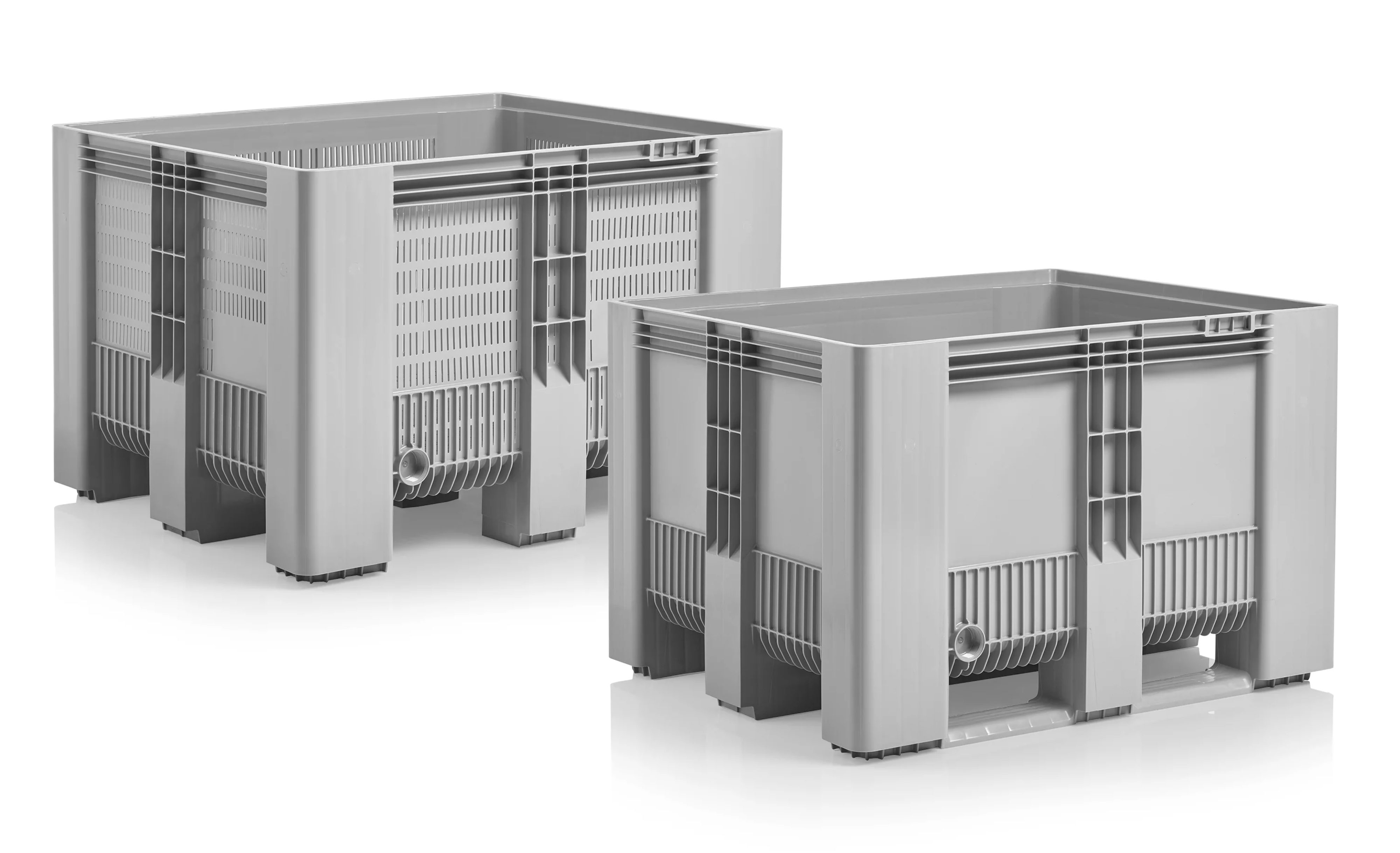 Thanks to its ingenious design, the one-piece, injection moulded SB3 offers numerous advantages in day-to-day use. The particularly stable runner or foot connection ensures extreme resistance and, with the former version, secure lift-tilt emptying by a rotating forklift. Additional ribs on the outer walls provide increased impact protection against forklift tines, while the all-round stacking shoulder in the upper and lower edge make the container compatible with a large number of other containers (Euro stacking system). The seamless construction and the smooth inner surfaces enable easy emptying, easy cleaning and good drying properties. The vents of the perforated version are chamfered on the inside to protect sensitive goods. The SB3 is temperature-resistant from -30 to +40 degrees Celsius, briefly up to +90 degrees, and it complies with the European container standards DIN EN 13626 and DIN EN ISO 12048.