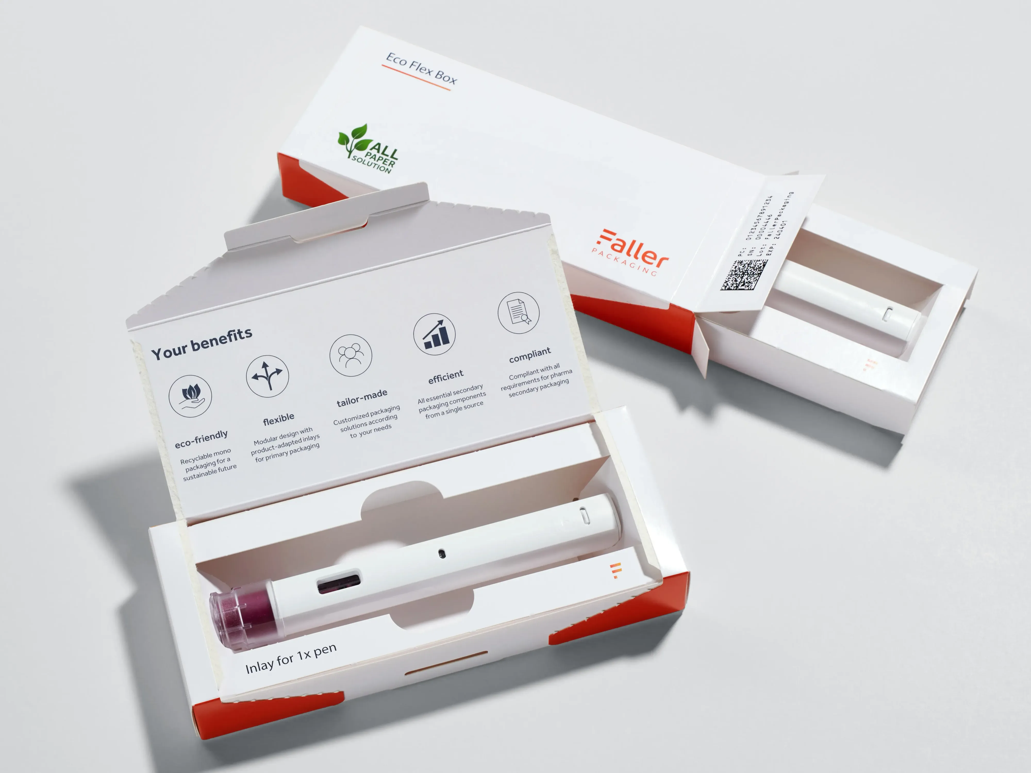 Auto-injectors and pens enable patients to self-administer medication safely. These modern application systems replace visits to the doctor and reduce the burden on the healthcare system. However, this also increases the need for secondary packaging that combines protection, functionality and user-friendliness. Faller Packaging develops sustainable and customisable solutions to achieve this.