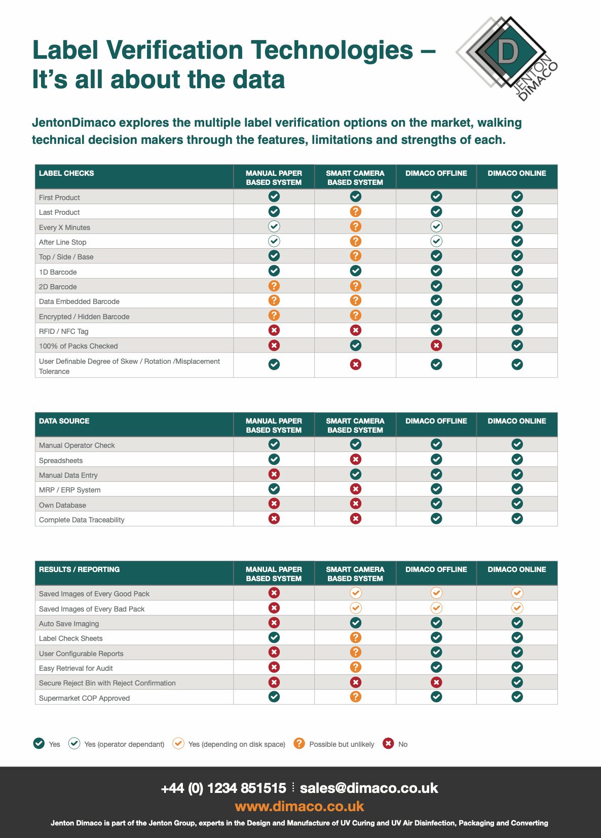 View the comparison chart 'Dimaco Label Verification Technologies' below.