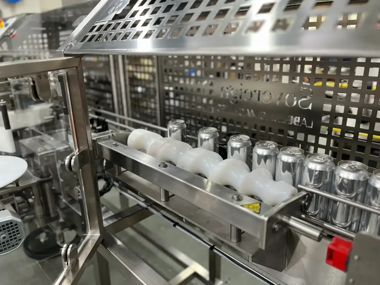 The system installed by Northern Monk is a Sovereign Monarch line. It features a linear wrap labeller that precisely and securely applies full-height wraparound labels onto containers. This is preceded by a scroll-fed system that controls the flow of cans, with servo-driven conveyors ensuring smooth and controlled passage of containers to be labelled throughout the line.