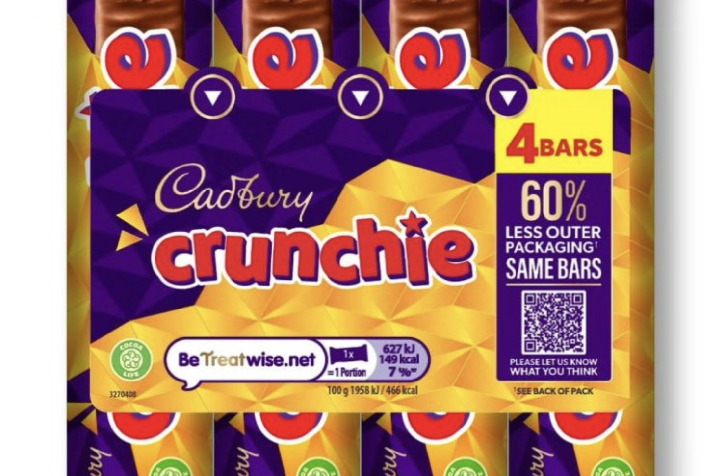 The pilot, running until early 2026, replaces the traditional plastic overwrap on Cadbury Crunchie Four Bar Multipacks with a sticker. The stickers feature a QR code linking to an online survey, where shoppers can provide feedback on the design and usability. The code also gives access to nutritional and recycling details previously displayed on the multipack’s outer wrap.