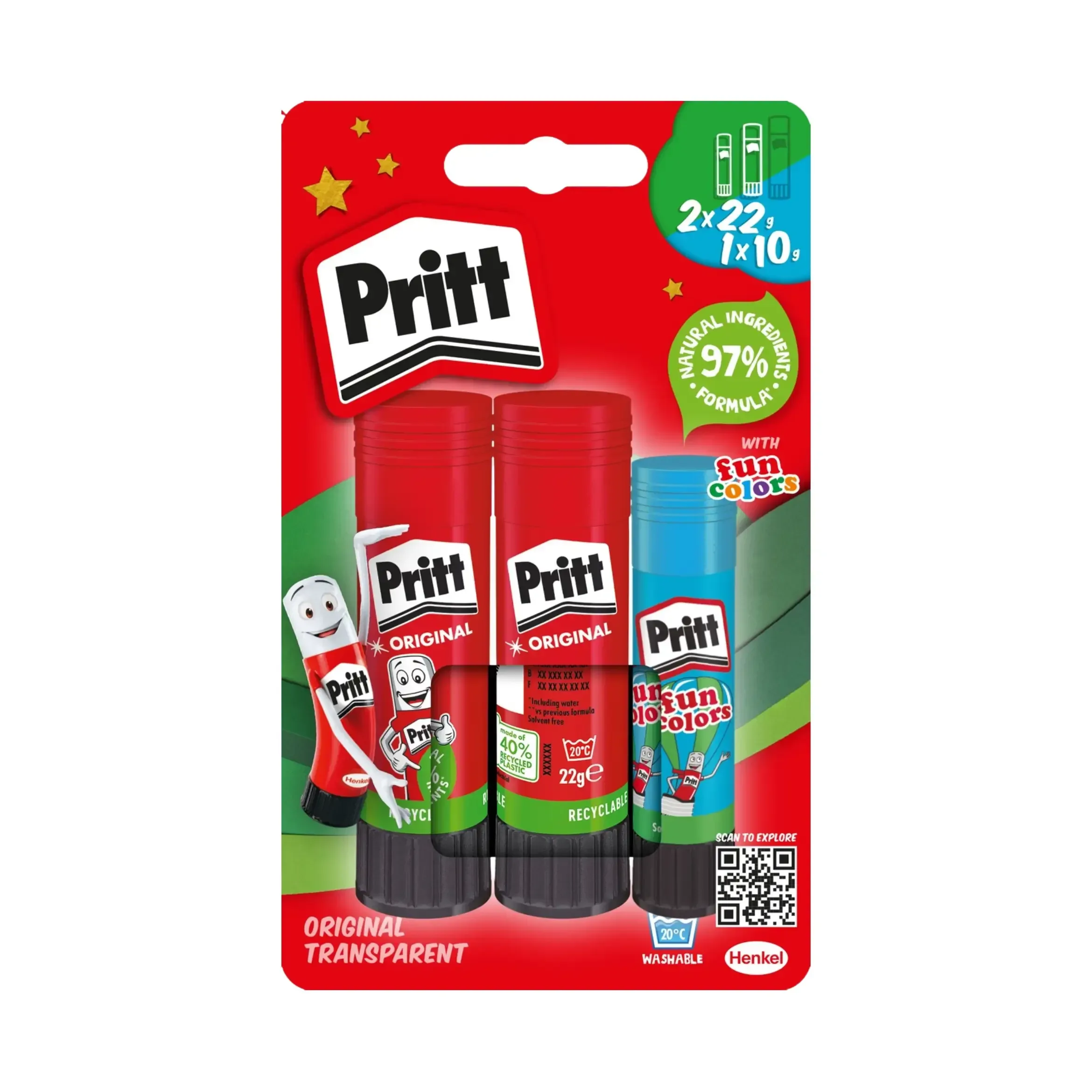 Pritt glue sticks, first introduced in 1969, are widely used in schools and homes and are now made with 97% natural ingredients, including water. The sticks incorporate up to 65% recycled plastic while maintaining performance features such as strong initial tack and the ability to reposition materials during crafting.