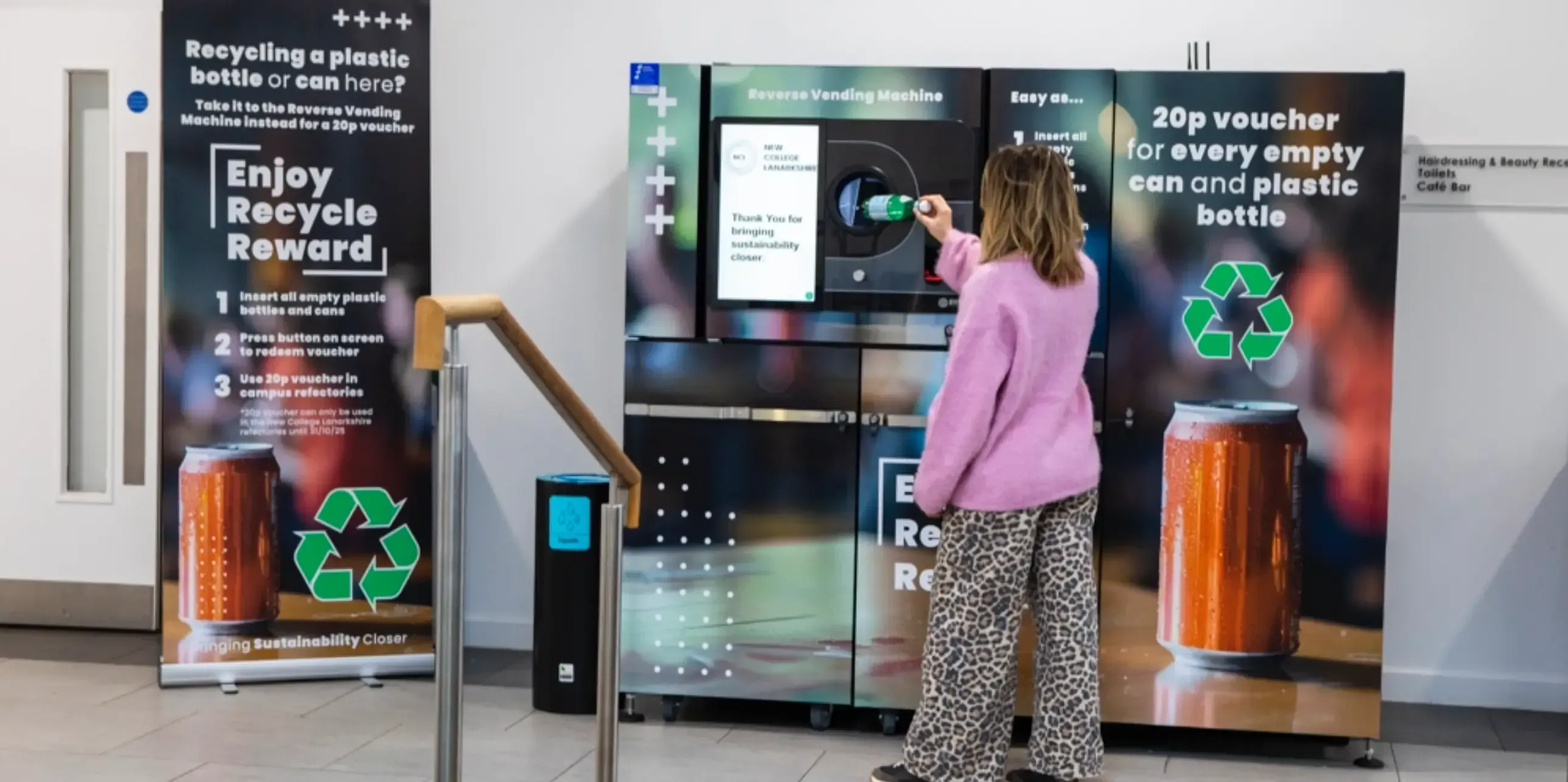 Students at New College Lanarkshire recycled more than 20,000 plastic bottles and aluminium cans over a five-week period after a 20p incentive was introduced for each container returned via on-campus reverse vending machines (RVMs).