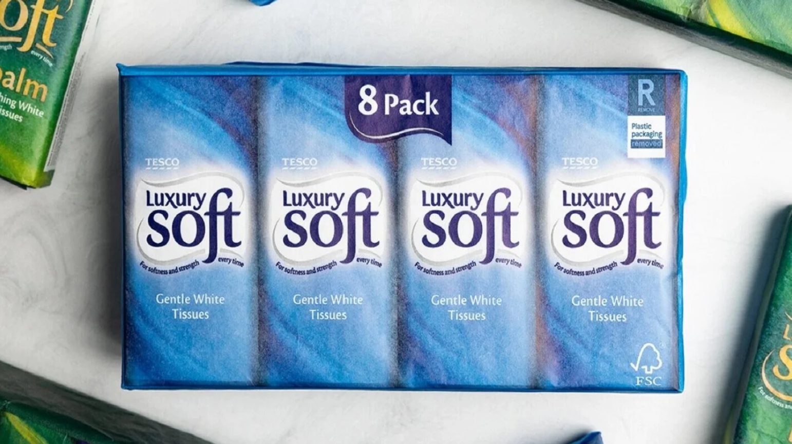 This move positions Tesco as the 'first' supermarket to transition its own brand pocket tissues, contributing to an annual reduction of almost 35 tonnes of new soft plastic.
