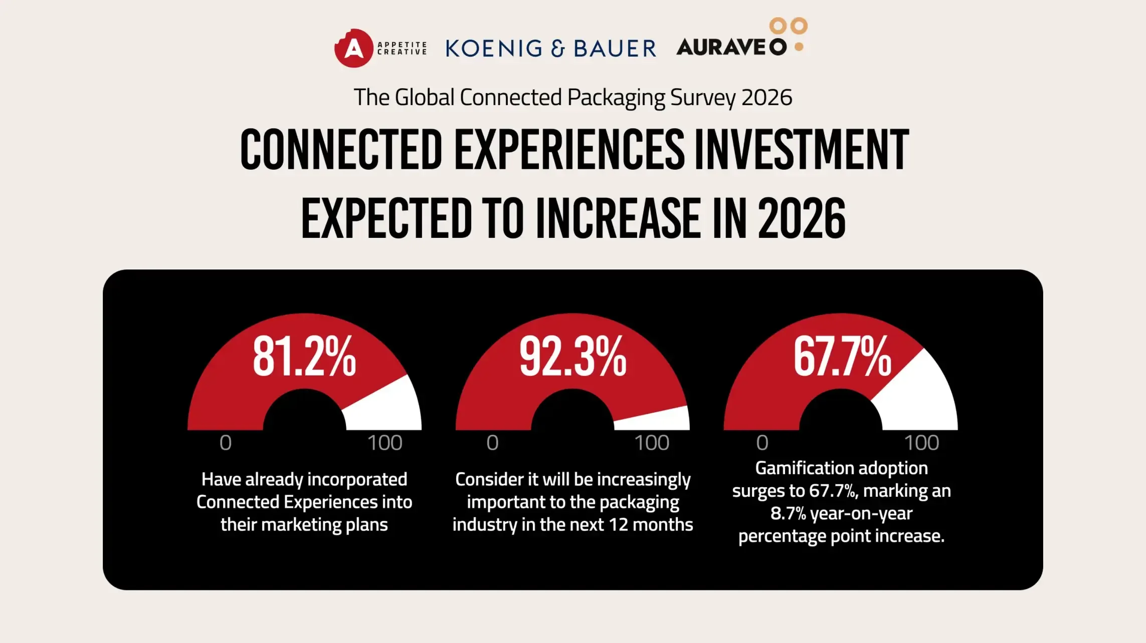 Global leader in connected packaging, Appetite Creative, in partnership with Koenig & Bauer AURAVEO, has released results from its fifth annual Global Connected Packaging Survey 2026. The research reveals that 92.3% of those surveyed say that connected packaging will be increasingly important to the packaging industry in the next 12 months and beyond, up from 88.8% in 2025.